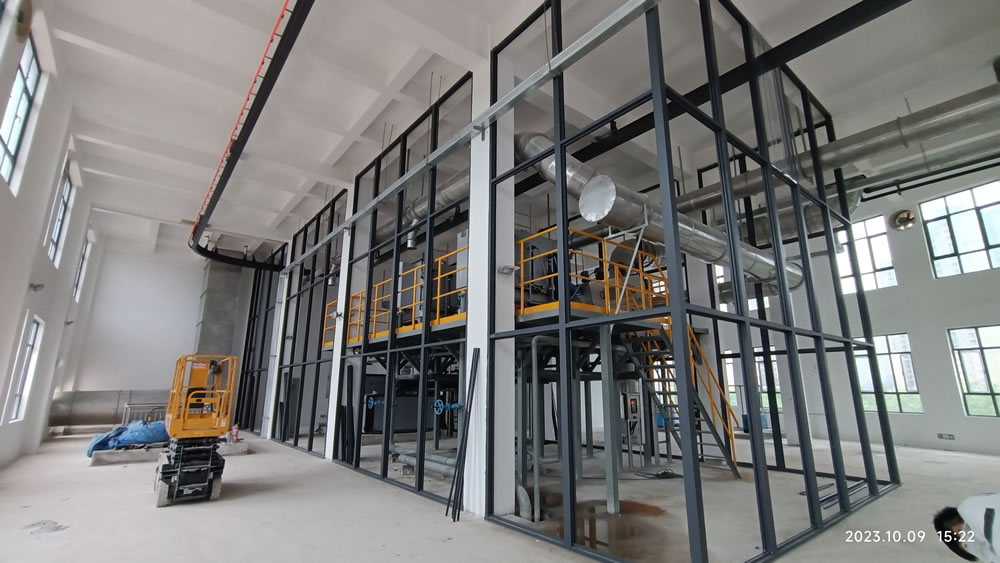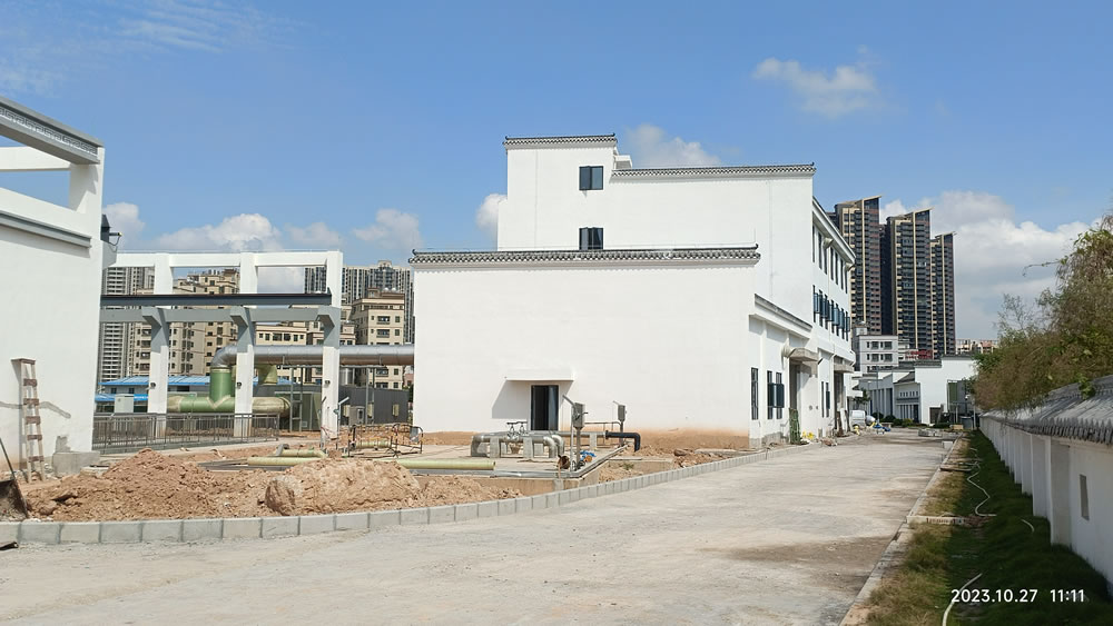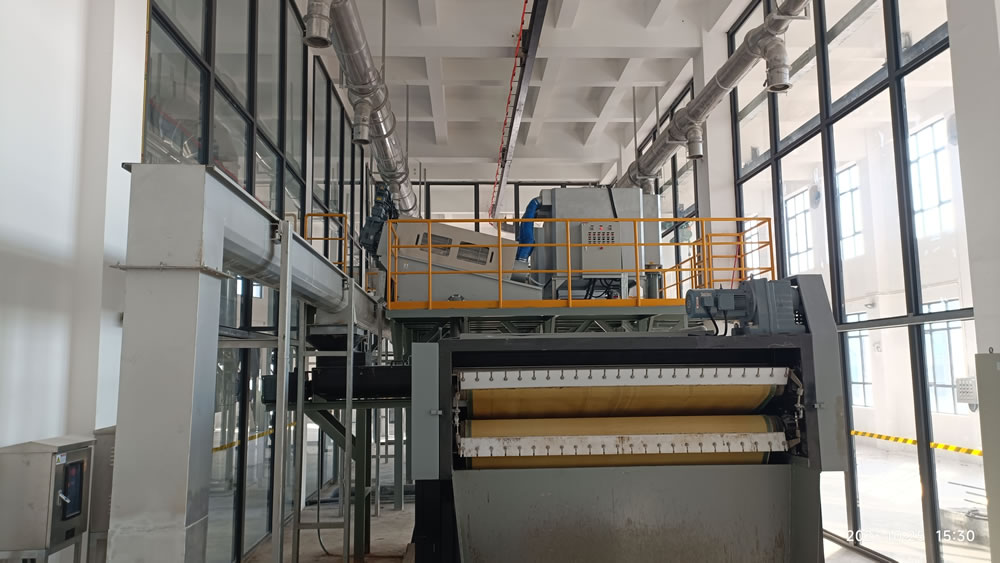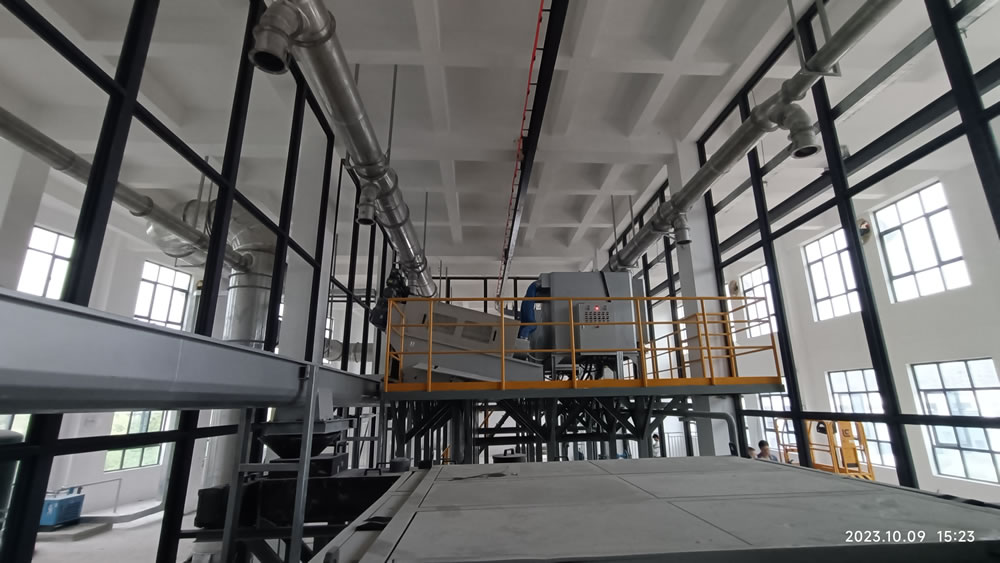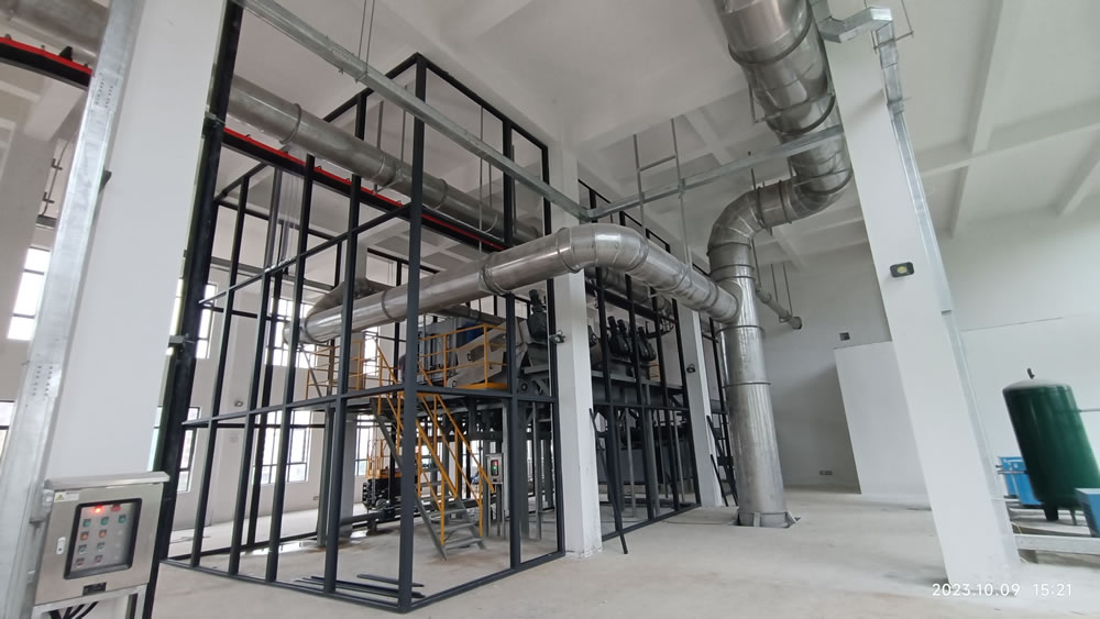 本项目位于广东省惠州市大亚湾开发区,是大亚湾水务集团第二水质净化厂三期工程项目的污泥系统的污泥低温干化工程。污泥干化工艺流程为:储泥池→污泥提升螺杆泵→叠螺机→高压带机→湿料仓、螺旋输送机→切条机→低温干化主机→刮板输送机→干料仓→污泥车运走,出泥含水率小于40%。除臭系统:离子新风系统、生物除臭系统。